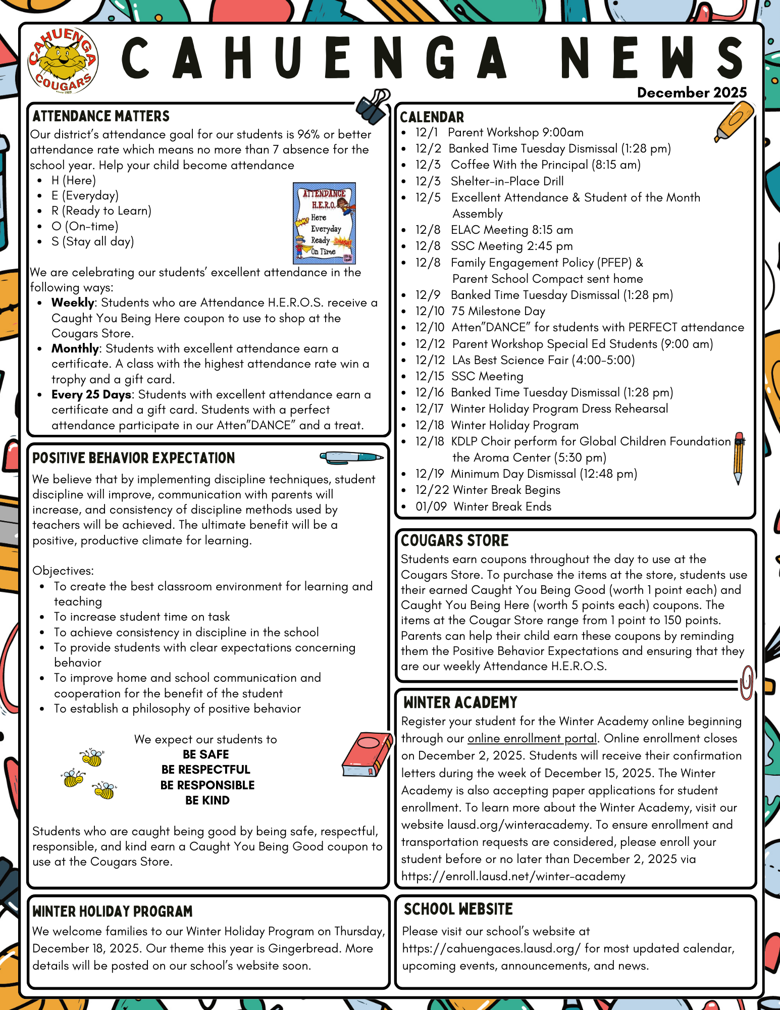 Cahuenga December Calendar(English)